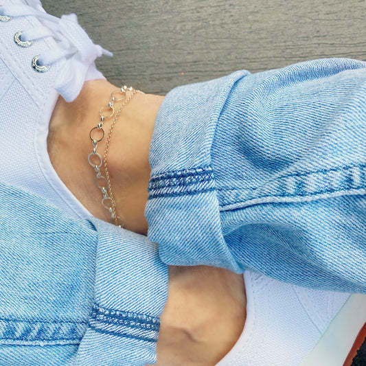 Aria Anklet | Silver/Gold Satellite Chain Anklet